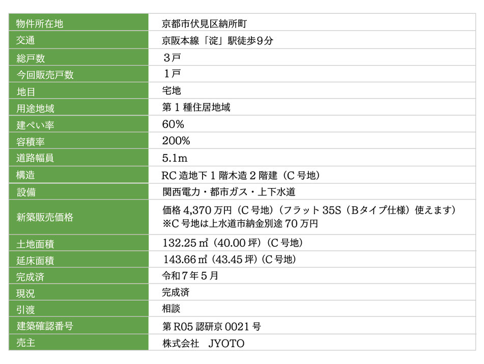 〈新築分譲住宅〉 京都市伏見区納所町 全3区画